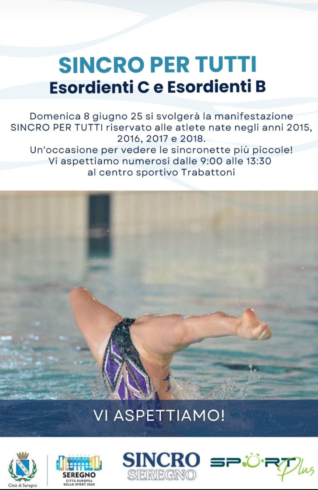 Alla manifestazione Sincro per tutti, facente parte del circuito gare organizzate dal Comitato regionale lombardo, parteciperanno bambine nate negli anni 2015, 2016, 2017 e 2018 (Esordienti B ed Esordienti C).