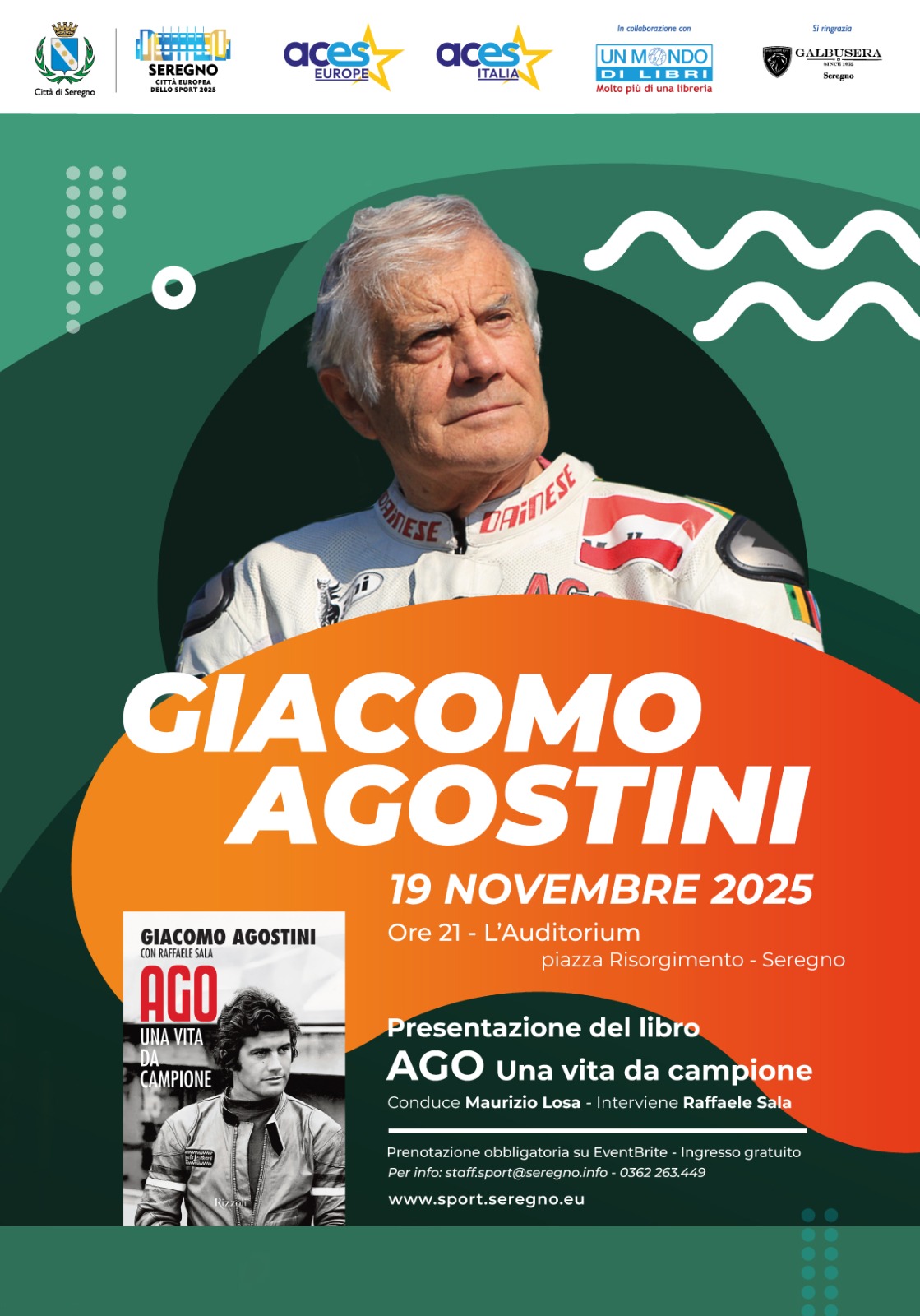 Giacomo Agostini, il pilota più vincente della storia del motociclismo, racconta la propria vita presentando il libro “Ago – Una vita da campione”, scritto con Raffaele Sala.