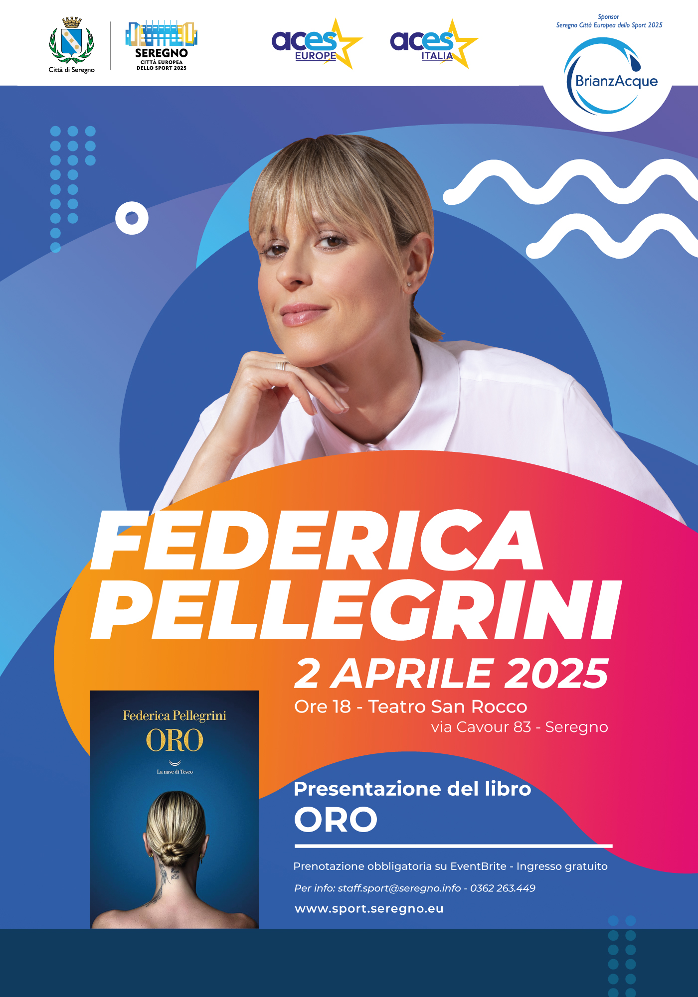 nell’ambito degli eventi di Seregno Città Europea dello Sport, si svolgerà una serata esclusiva con Federica Pellegrini, icona del nuoto mondiale e figura di spicco dello sport internazionale, alle ore 18 presso il Teatro San Rocco.